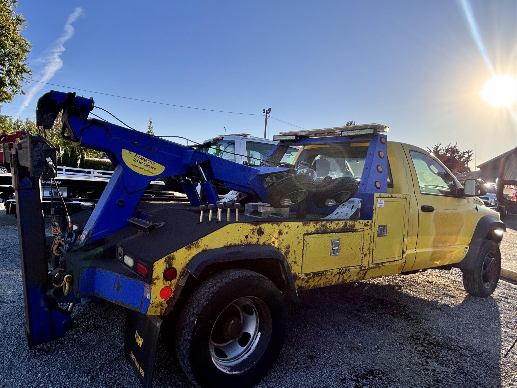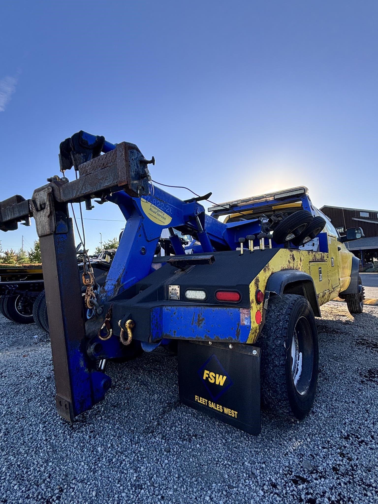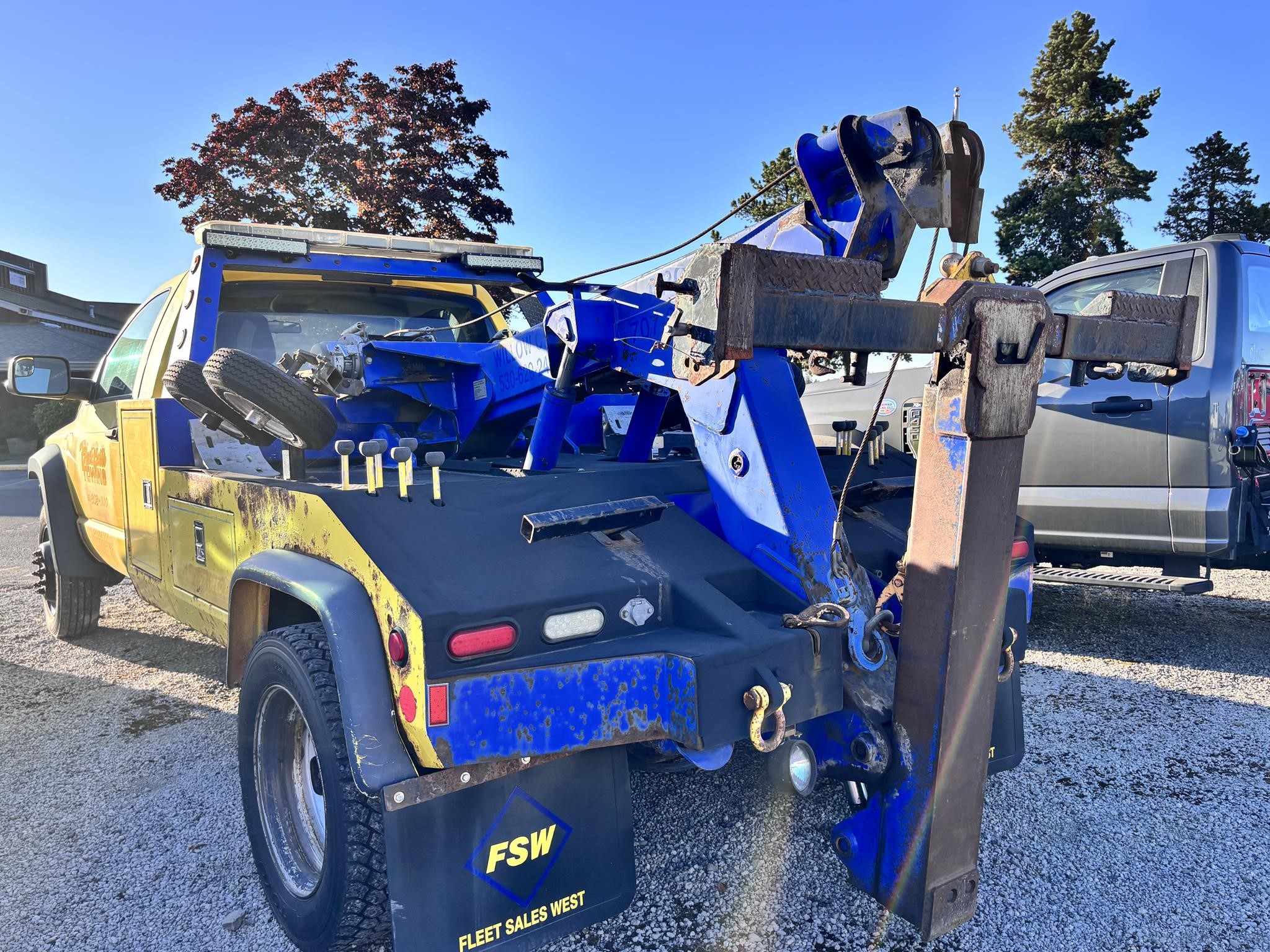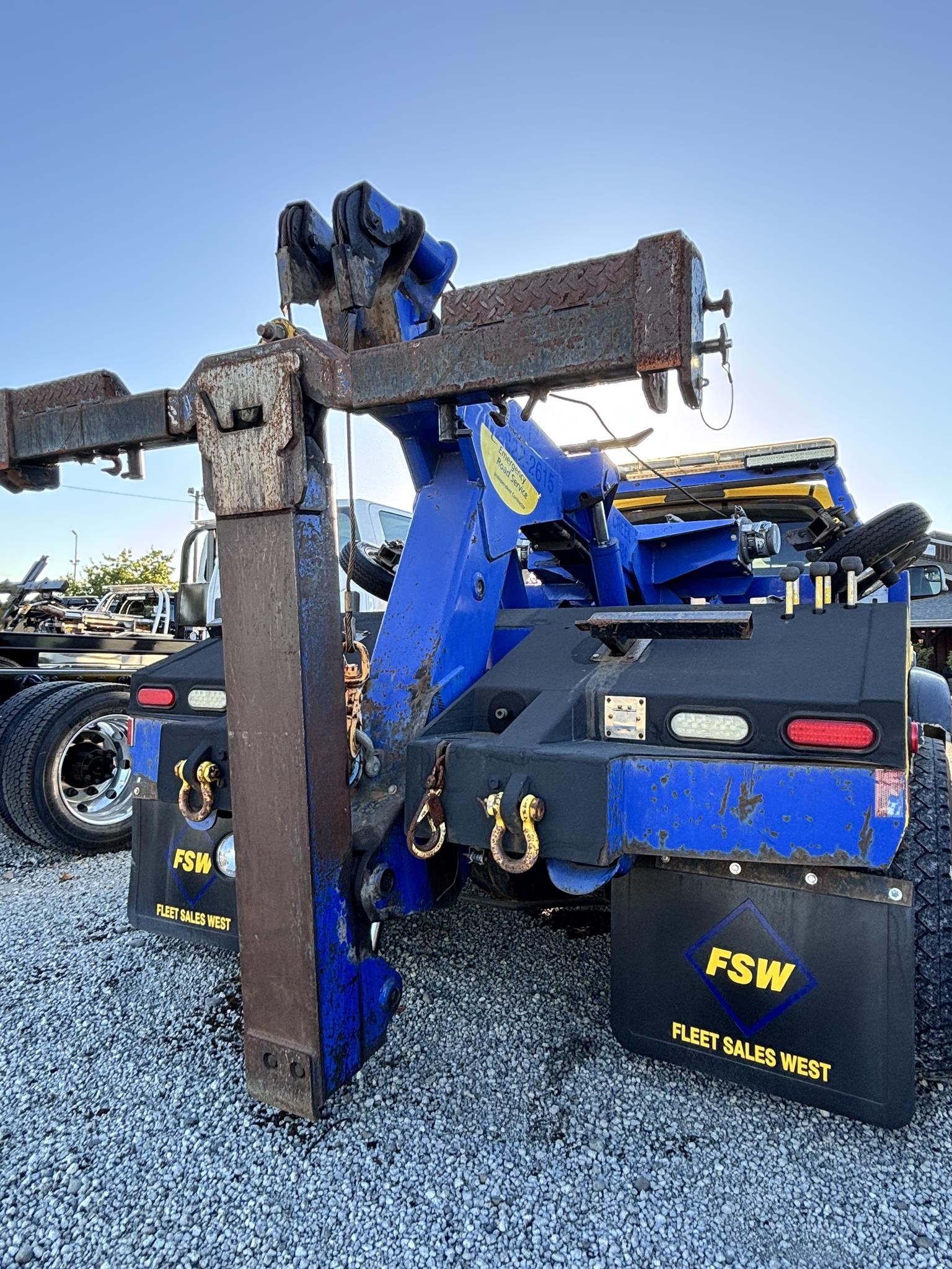 Chevron model 408. 8-ton Hydraulic boom. Dual 9,000lb planetary winches with wide drums. (Warn). 100' 3/8" cable per Drum. 86" wide body. Dual side entry boxes. FMVS 108 Lamp Group. Dual snatch block anchors. High-volume direct mount pump. Mudflap Brackets, Chain pockets. Safety chains. 4,000lb Standard crossbar* Tow light plug. Straps and ratchets for wheelift. Cable Tensioners Installed.. body Serial #0408T14251