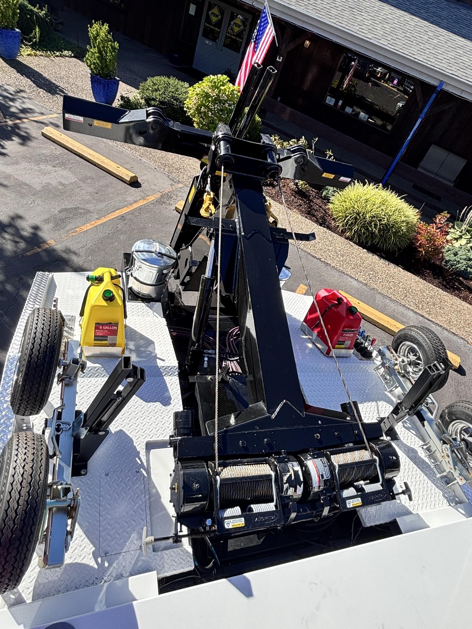 Century 312, 8-ton Integrated Boom & Wheel Lift System -express Hydraulic Hook-Up. Clutch Pump In-Cab Remote Control Pendant on Cord with 8 Functions. Dual Manual Controls 1 Pair of Safety Straps. (2) 3/8" x 100' Cable Assembly Tool Compartment, Left & Right Hand Side Adjustable Modular Body Power Boom Elevation with Holding Valve, Dual 8,000 lb. Variable-Speed Hydraulic Winches with Safety Chains in Rear Pockets. 5/16, Grade 70. 360° Directional Boom End Swivel Cable Tensioner. Federal Standard #108 Light Group Wiring Harness with Junction Box. Mud Flaps Back-Up Alarm. Power Fold for Stinger Storage Self Centering Crossbar with 3" Pivot Pin roller Guided Hose Tracking System Pre-assembled and Tested. Boom Specifications: Lift Height at Maximum Elevation Retracted 78", Extended 105" Reach Past Tailgate Minimum Elevation (Extended) 50" Maximum Elevation (Extended) 22" Boom Rating at Boom Swivel Retracted 16,000 lbs. Extended 4,000 lbs. Maximum Boom Elevation 33° WHEEL LIFT SPECIFICATIONS Retracted Distance from Tailgate at Normal Tow Position 51" Extended Distance from Tailgate at Normal Tow Position 85 1/2" Maximum Hydraulic Extension 33 3/4" Lift Rating 4,000 lbs. Tow Rating 7,500 lbs. Serial# 3121H23915