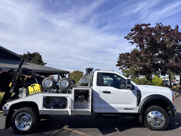 2024 Ford F-550XLT 4x4 XLT w/ Power Stroke 6.7L Diesel, 475HP TorqShift, Transmission: TorqShift 10-Speed Automatic, 84” CA, Cloth 40/20/40 Split Bench Seat, 26.5Gal Midship Fuel Tank, Running Boards, Rear View Camera, Radio: AM/FM Stereo w/MP3 Player 7,000lb Front axle. 13,5000 Rear axle.limited slip, 4.30 ratio. 225/70Rx19.5G BSW Traction, 19.5 Aluminum wheels, High Capacity Trailer Tow Package, Low deflection package. Engine block heater. 410 AMP Dual Alternators, carpet delete, platform cab steps.Power group, Windows, Locks, Mirrors, Keyless Entry.. Cruise, Idle up - Transfer case skid plate. ( Set up by Builder) Upfitter switches. x 5. GVWR 19,500lbs payload package. upgradeCentury 312, 8-ton Integrated Boom & Wheel Lift System -express Hydraulic Hook-Up. Clutch Pump In-Cab Remote Control Pendant on Cord with 8 Functions. Dual Manual Controls 1 Pair of Safety Straps. (2) 3/8" x 100' Cable Assembly Tool Compartment, Left & Right Hand Side Adjustable Modular Body Power Boom Elevation with Holding Valve, Dual 8,000 lb. Variable-Speed Hydraulic Winches with Safety Chains in Rear Pockets. 5/16, Grade 70. 360° Directional Boom End Swivel Cable Tensioner. Federal Standard #108 Light Group Wiring Harness with Junction Box. Mud Flaps Back-Up Alarm. Power Fold for Stinger Storage Self Centering Crossbar with 3" Pivot Pin roller Guided Hose Tracking System Pre-assembled and Tested. Boom Specifications: Lift Height at Maximum Elevation Retracted 78", Extended 105" Reach Past Tailgate Minimum Elevation (Extended) 50" Maximum Elevation (Extended) 22" Boom Rating at Boom Swivel Retracted 16,000 lbs. Extended 4,000 lbs. Maximum Boom Elevation 33° WHEEL LIFT SPECIFICATIONS Retracted Distance from Tailgate at Normal Tow Position 51" Extended Distance from Tailgate at Normal Tow Position 85 1/2" Maximum Hydraulic Extension 33 3/4" Lift Rating 4,000 lbs. Tow Rating 7,500 lbs. Serial# 3121H23915