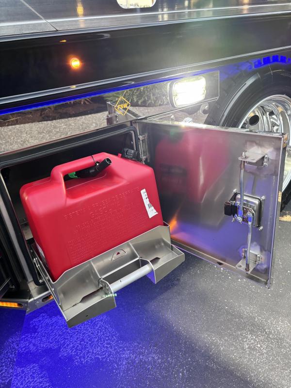 B/M: Fuel Can Rack, 2-Can, Aluminum, behind toolboxes
