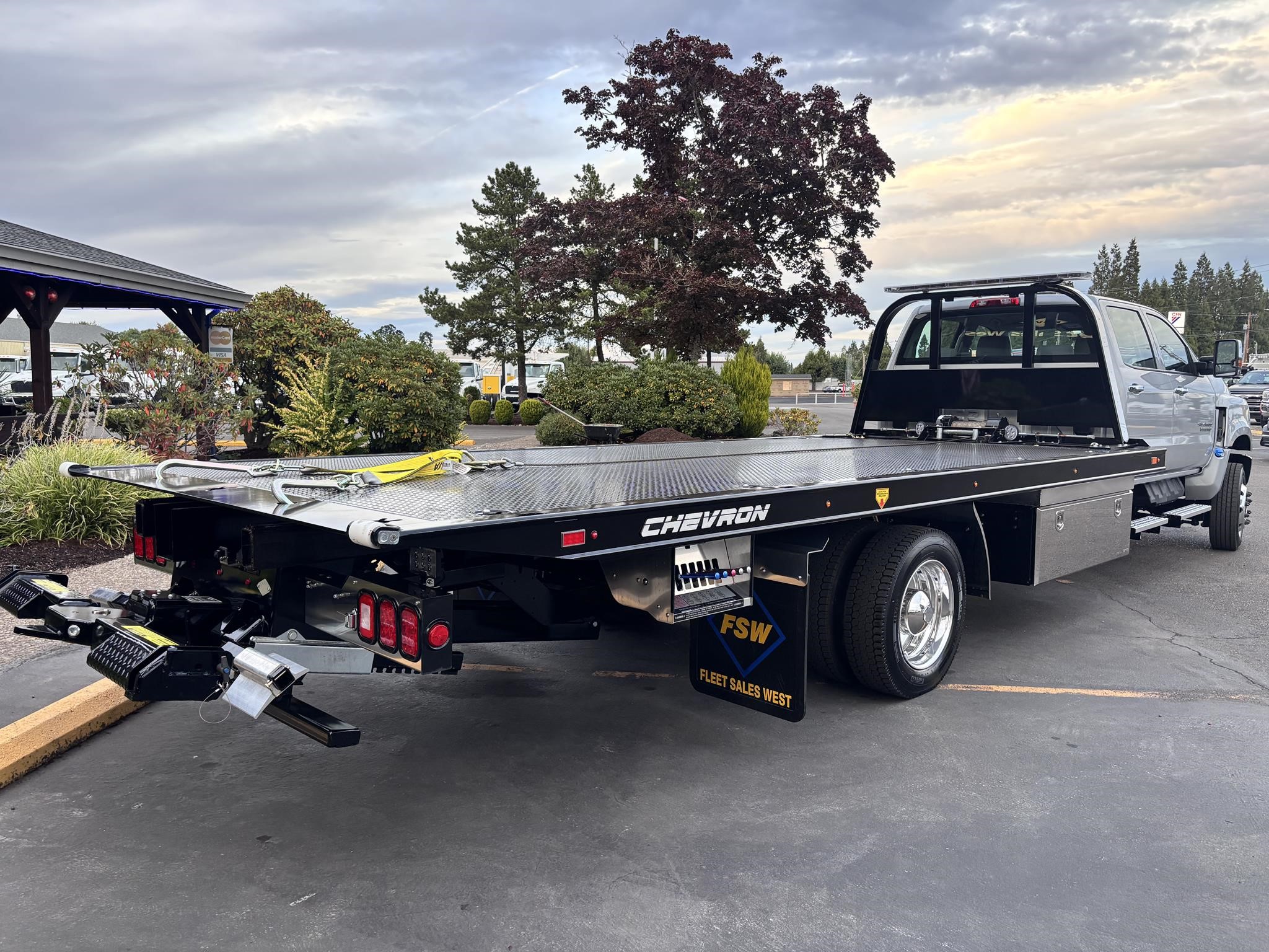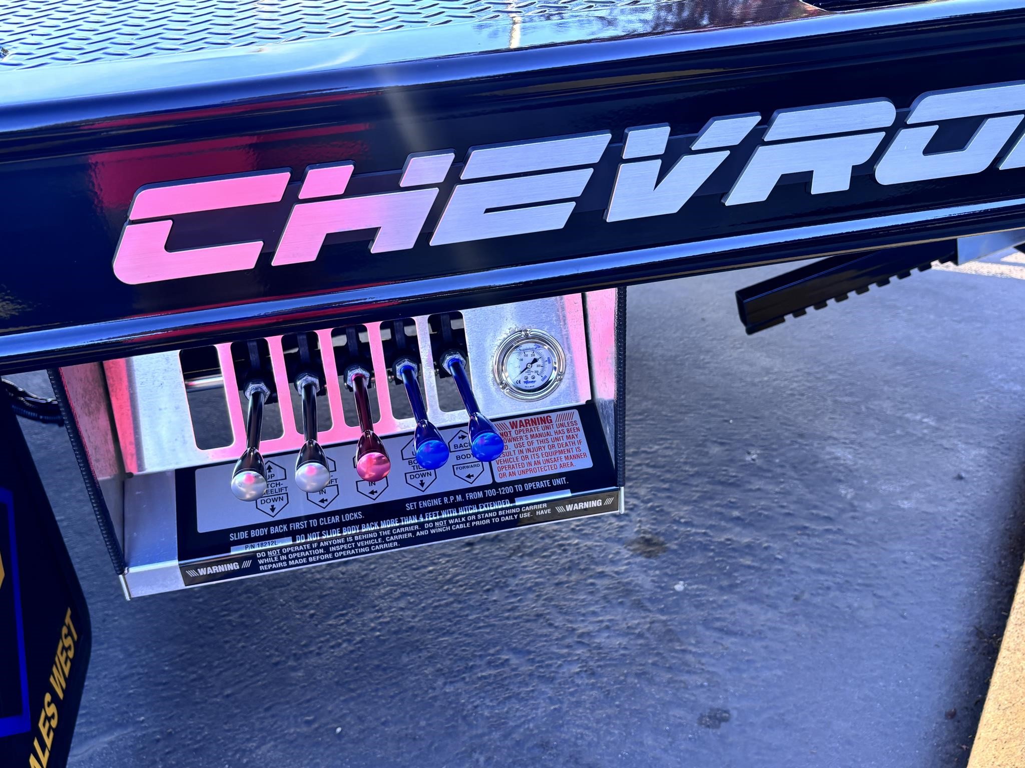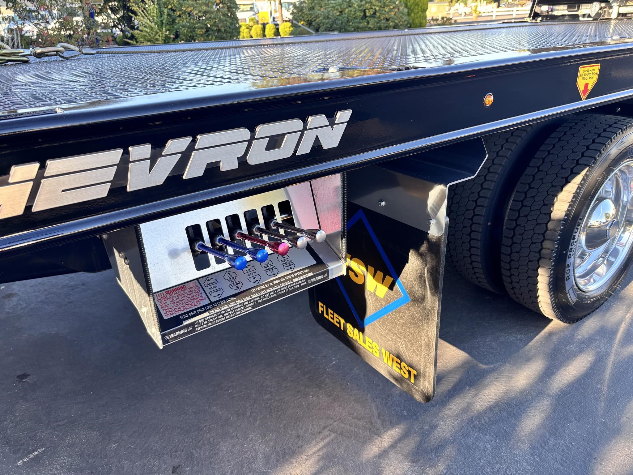 Chevron 19.6' Body Length steel carrier w/wheel lift w/ L-arms, full-length nyltron wear pads, (2) 3" lift cylinders, one extension cylinder, right and left chain trays, positive bed lock down system, 8,000# winch, winch roller guides, cable tensioner, left and right illuminated controls, back up lights, Federal standard 108 lighting, back up alarm, wheel lift safety pin, safety chains, 3000 psi operating system, 1080 square inches of slide pad, full length sub frame. LED Body lights. Body Serial # ST10C2B250939
