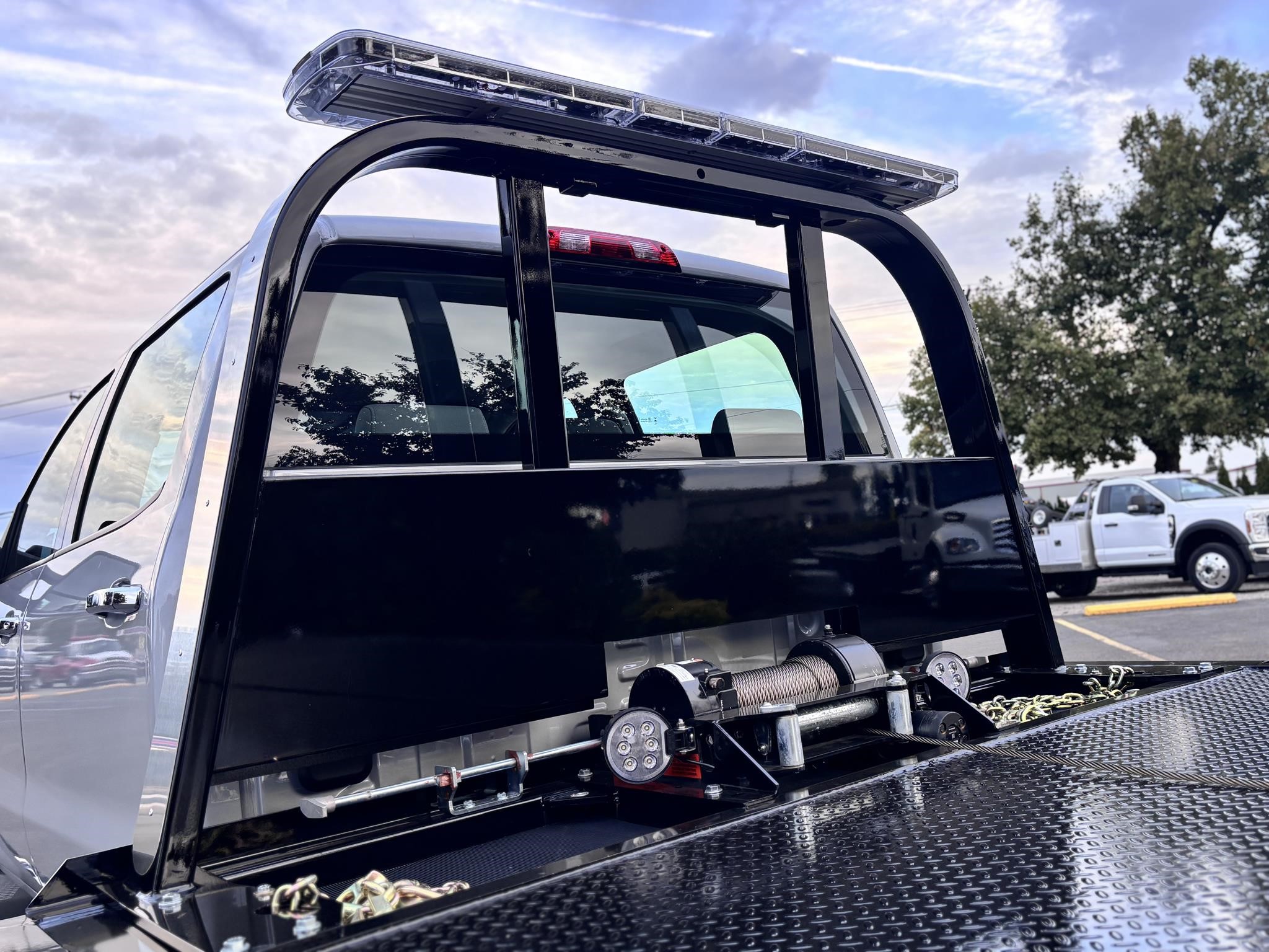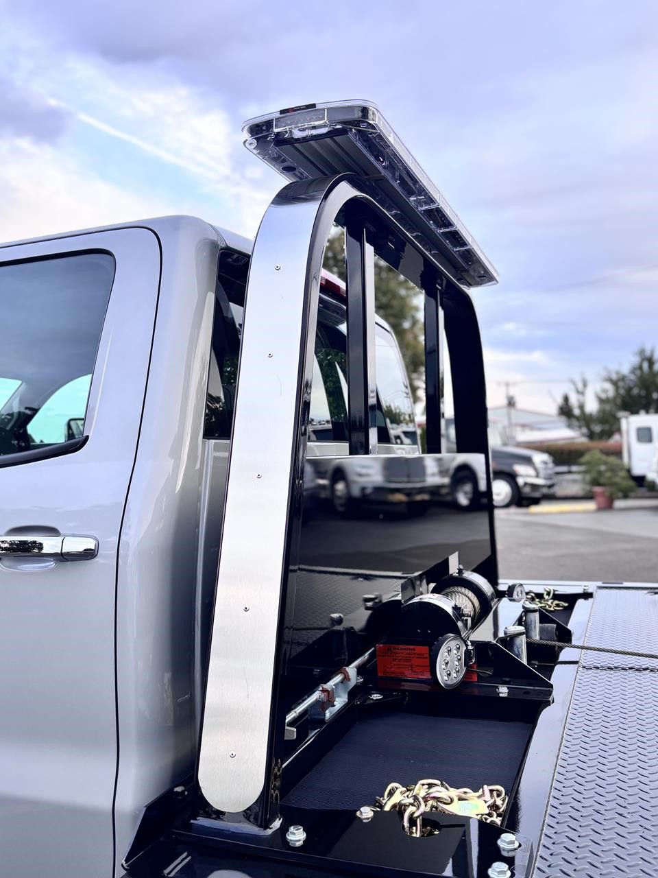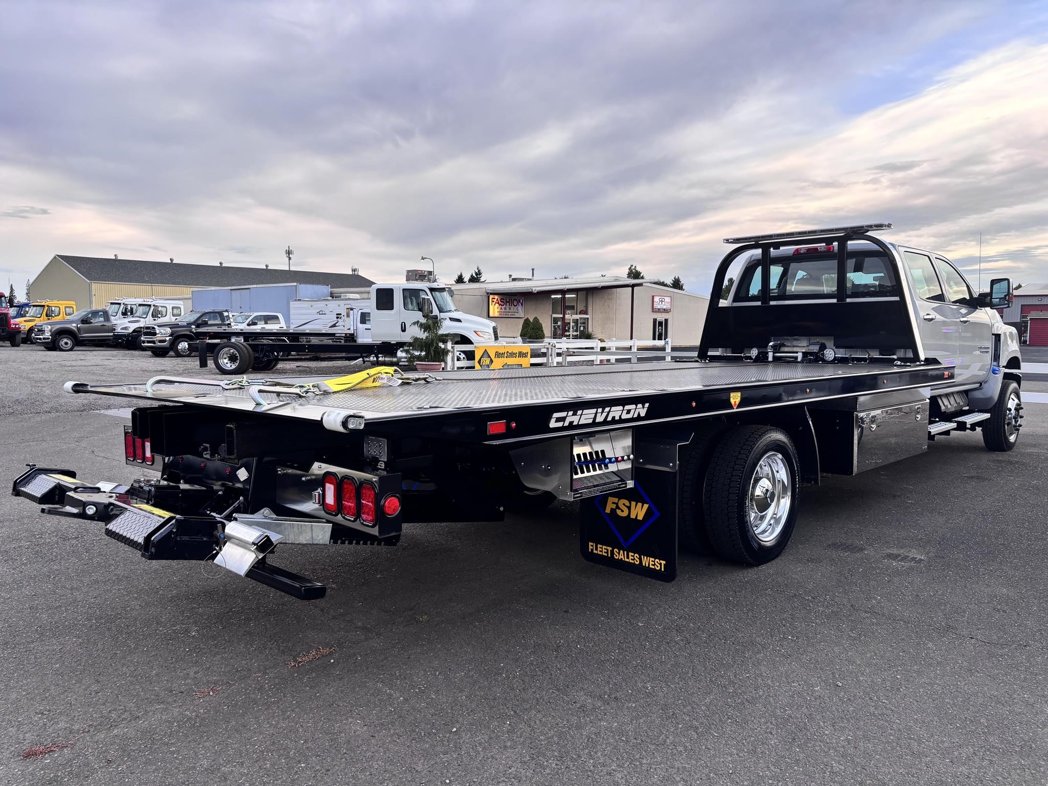 Chevron 19.6' Body Length steel carrier w/wheel lift w/ L-arms, full-length nyltron wear pads, (2) 3" lift cylinders, one extension cylinder, right and left chain trays, positive bed lock down system, 8,000# winch, winch roller guides, cable tensioner, left and right illuminated controls, back up lights, Federal standard 108 lighting, back up alarm, wheel lift safety pin, safety chains, 3000 psi operating system, 1080 square inches of slide pad, full length sub frame. LED Body lights. Body Serial # ST10C2B250939
