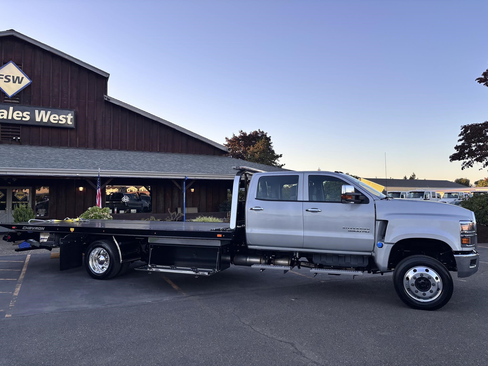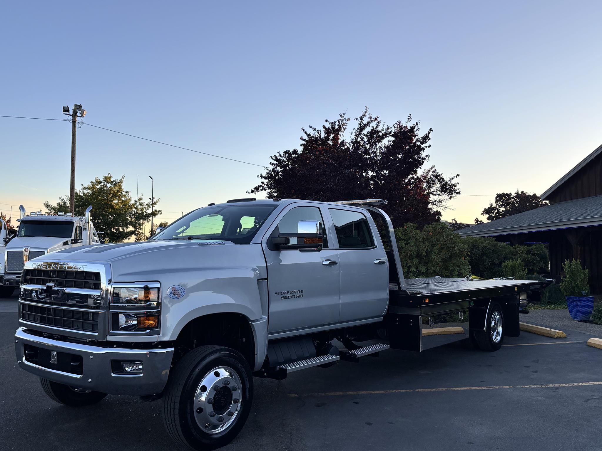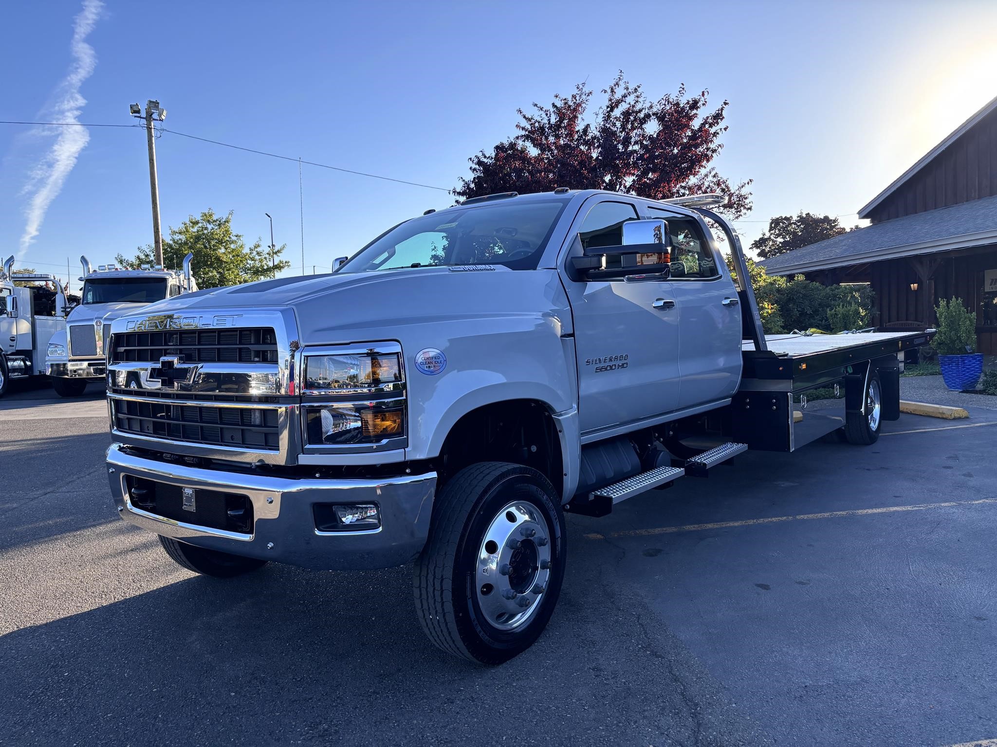 2024 Chevy 5500 Crew Cab 4x4 Package 6.6L 360HP Duramax. Exhaust Brake. 7500lb Front axle. Rear axle 13,500 lbs. Chrome Bumper. Chrome Grille. Driver suspension seat, two-man pass seat. Rear Seat. Aluminum wheels. 120" CA.