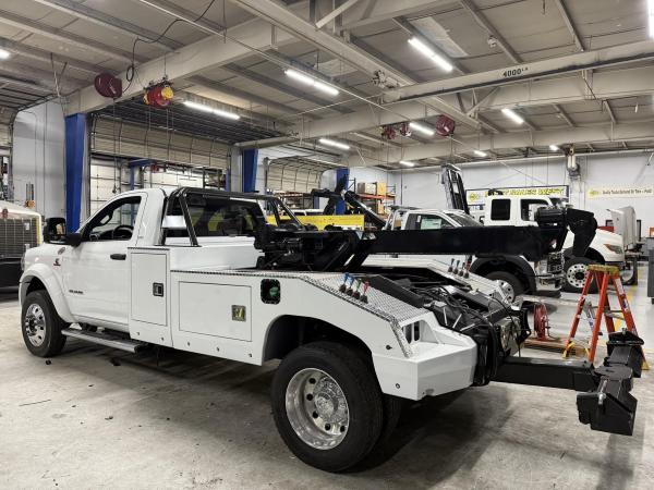 Vulcan Model 894. 10-ton Hydraulic Recovery boom. With Dual 12,000lb hydraulic winches 150 ft. winch cable (894) 360-degree directional boom end swivels Power boom elevation with holding valve. Power boom extension, Lubrication fittings on all shafts and other moving parts 90" wide, low profile body 9" sills Two rear-tie back loops, Dual control stations 3" lift forks and fork holders Backup alarm. Vulcan Scoops System Driver and passenger side tool compartments. Federal standard #108 lighting Wiring harness with junction box, Hydraulic pump Safety chains with built-in pockets EZ service hydraulic filter, Spring-loaded winch clutch releases. Split Dual Boom & Wheel Lift Controls, Wheelift/underlift.. 5,000 lb Wheel Retainers. Tailboard Safety Chain Pockets. Wheel Lift Safety Chains - 5/16, Grade 70. Winch Cable Tensioner(s) & Free Spool Handles. 1 Set of 3” Low Profile Frame Forks and Holders. 9,000 lbs on Frame Forks, Retracted. Serial # 8941H236396