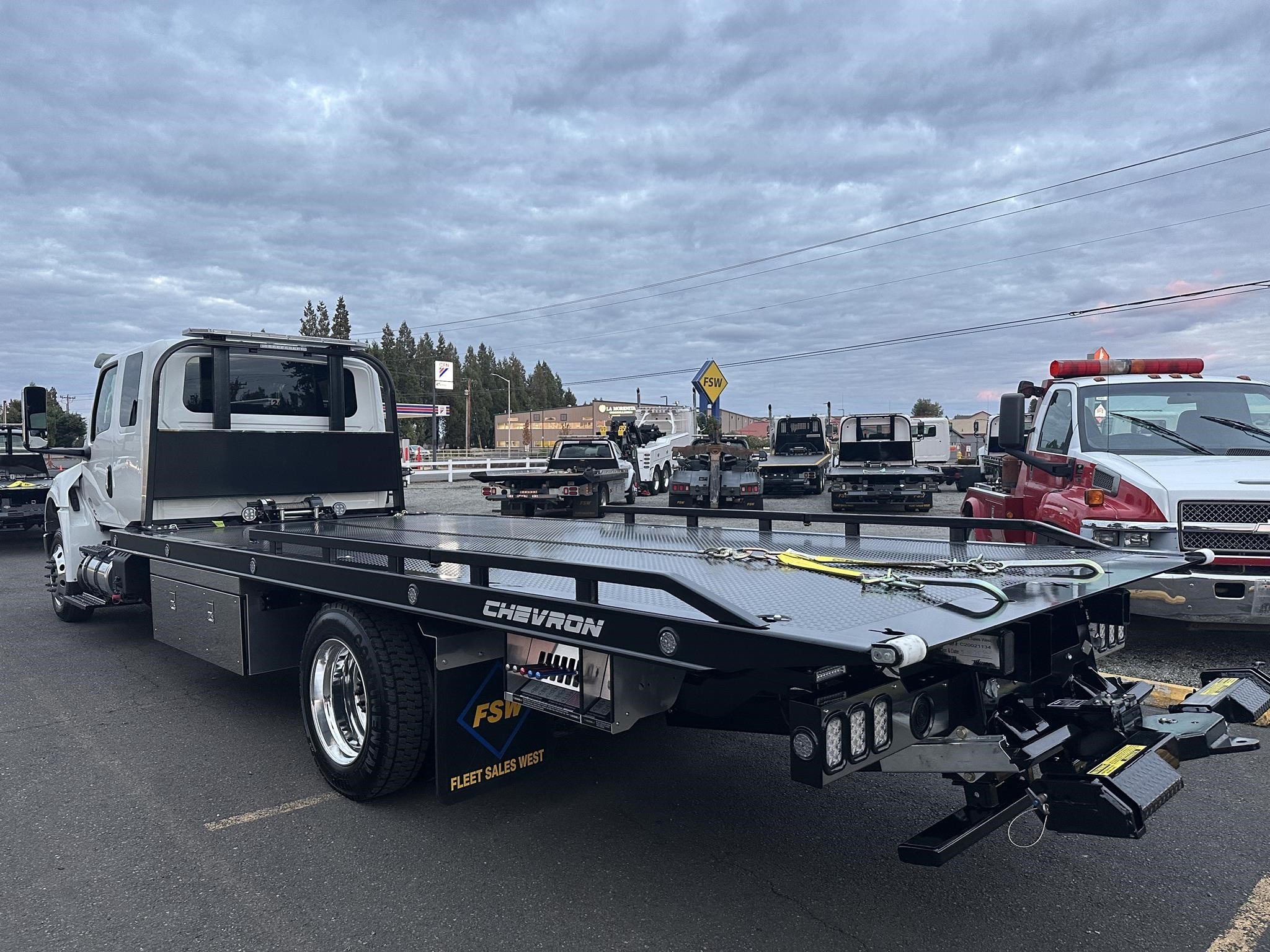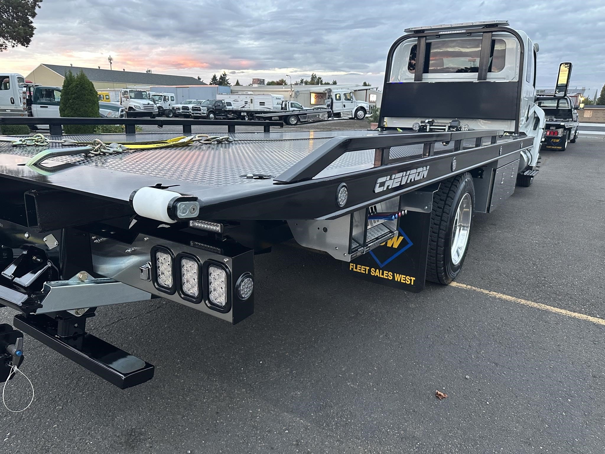 Chevron Steel LCG (Low Center of Gravity) Carrier w/ Wheel Lift, 3/16 Deck Plate, 3x2 Corten Tube Crossmembers on 8 inch Centers, (4) Rear Chain Locks, (2) Front Chain Locks, (6) Floor Plate Chain Locks (3 per side), 8,000lb Worm Gear Winch, 3/8" x 50' Winch Cable, Illuminated Dual Controls, FMVSS 108 Lamp Group Shock Mounted Lighted, Direct Mount Pump, Cable Roller Guide w/ Tensioner, Winch Free Spool Extension, Back-Up Alarm, (2) Safety Chains, Mechanical Anti-tilt, Black Body Paint, 102" Wide Body, Inboard Tilt Cylinders, Floor Level Roll Formed w/ Punched Stake Pockets, 4,000lb Wheel Lift w/ Releasable L Arms, Fully Hydraulic Wheel Lift, (2) Safety Straps & Ratchets, (2) Rear Safety Chains, Body Lock w/ Nylatron Toller Bearings, & 12,000lb Deck Load Rating. Body SN# ST12L2E252204