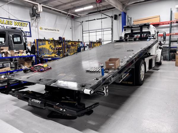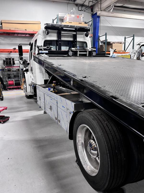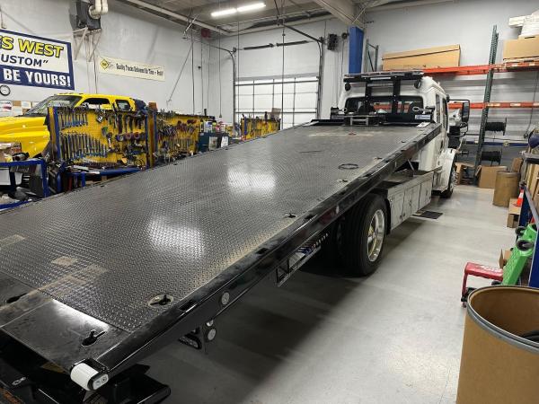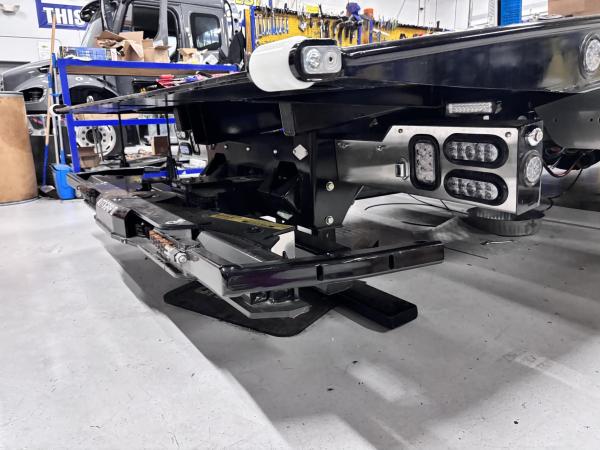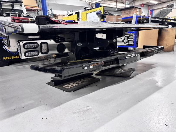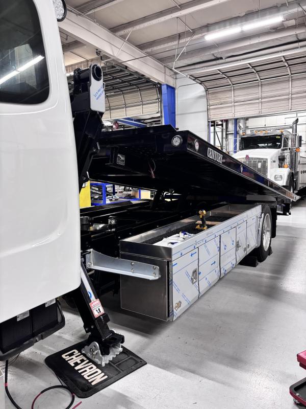 Chevron 22' Steel LCG (Low Center of Gravity) Carrier w/ Wheel Lift, 3/16 Deck Plate, 3x2 Corten Tube Crossmembers on 8 inch Centers, (4) Rear Chain Locks, (2) Front Chain Locks, (6) Floor Plate Chain Locks (3 per side), 8,000lb Worm Gear Winch, 3/8" x 50' Winch Cable, Illuminated Dual Controls, FMVSS 108 Lamp Group Shock Mounted Lighted, Direct Mount Pump, Cable Roller Guide w/ Tensioner, Winch Free Spool Extension, Back-Up Alarm, (2) Safety Chains, Mechanical Anti-tilt, Black Body Paint, 102" Wide Body, Inboard Tilt Cylinders, Floor Level Roll Formed w/ Punched Stake Pockets, 4,000lb Wheel Lift w/ Releasable L Arms, Fully Hydraulic Wheel Lift, (2) Safety Straps & Ratchets, (2) Rear Safety Chains, Body Lock w/ Nylatron Roller Bearings, & 12,000lb Deck Load Rating. Body Serial#