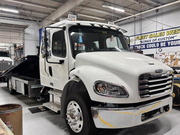M-2 Alum. 132" BBC Cab;Plus Cummins 6.7L Engine 300HP 660lbs Torque. Cummins Exhaust brake.Horton HT650 Frontal Air On/off Engine fan. Clutch. 2200 RDS Automatic Transmission 6 Speed. Phillips-TEMRO 750-Watt/115-Volt block heater. dash-mounted T-Handle Cable Shift Control w/ park brake position. Synthetic Transmission Fluid.Synthetic 75W-90 Front Axle lube 10,000# front suspension. ARS-19.0-2 19,000# R-SERIES single rear axle. 4.63 Rear Axle Ratio.SYNTHETIC 75W-90 rear Axle lube. Airliner 18,000# Rear Suspension. Manual Dump Valve for Air Suspension.with Gauge. - Air brake package. Air Dryer w/Heater. 120KSI (Frame). 50 Gallon/Rectangular fuel tank, aluminum: Alliance Fuel filter/Water separator with Primer pump. 255/70R22.5 Tires. Alum. 22.5X8.25 10-Hub pilot disc wheels. Dual West Coast Bright mirrors. 8" bright finish convex mirrors mounted under primary mirrors. Non-operating wing windows. Opal Gray Vinyl Interior. (2) Cup Holders; Heater, Defroster & Air Conditioner. Power windows. Single passenger seat. Air ride driver seat, Rear bench seat, Cordura cloth option. Adjustable Tilt and Telescoping Steering Column. (6) IGN Controlled Extra Switches to junction block AND 1 Circuit at 30 Amp. Windshield Wiper motor with a Delay marker light. Switches the self-canceling turn signal. Switch with dimmer, Washer/wiper, and hazard in Handle. Idle up, Cruise control. 22.5 Aluminum wheels 25,500 GVWR.Cordua Cloth - Seats- Keyless entry, 150" CA Gauge for Air Ride suspension.