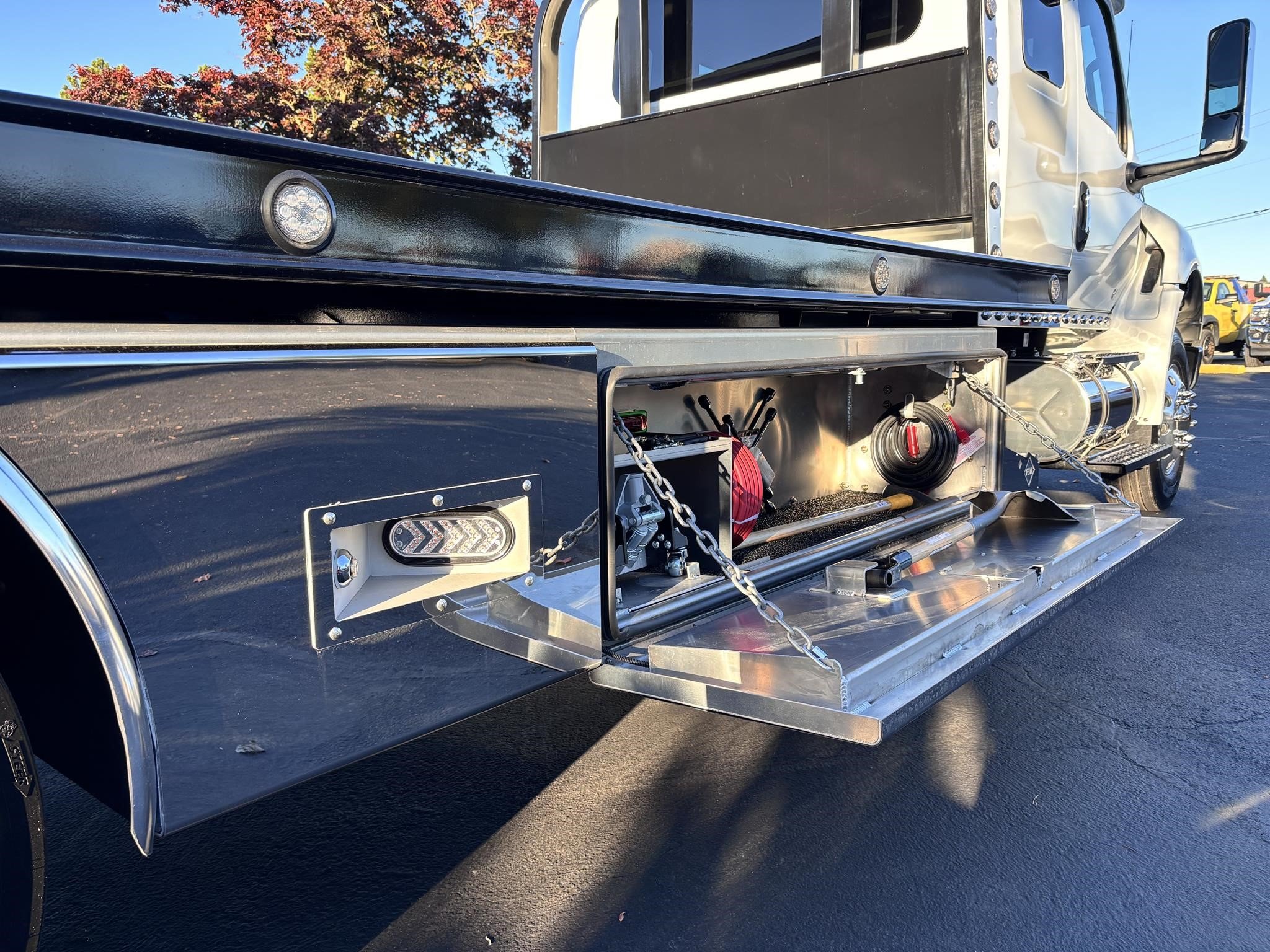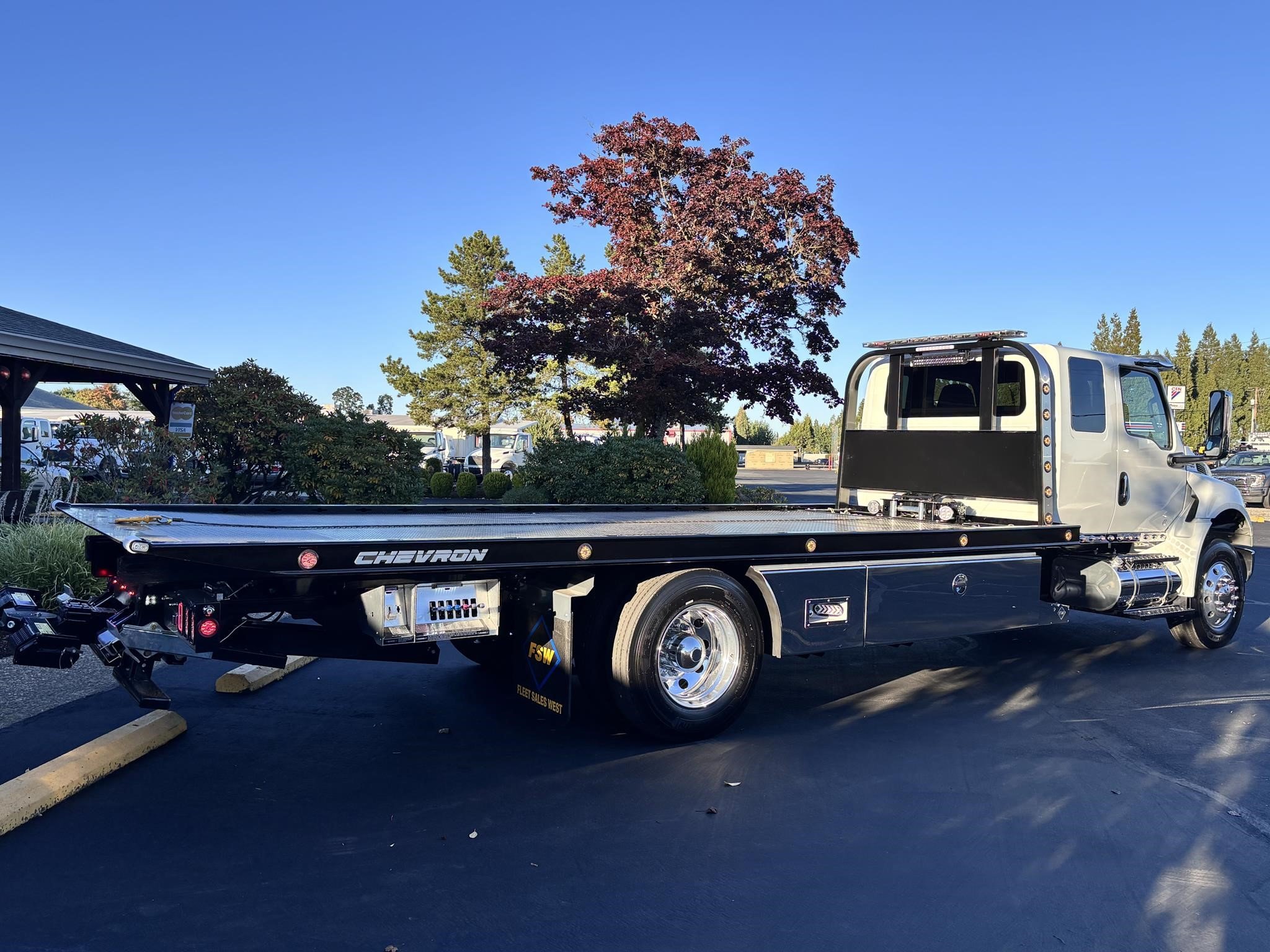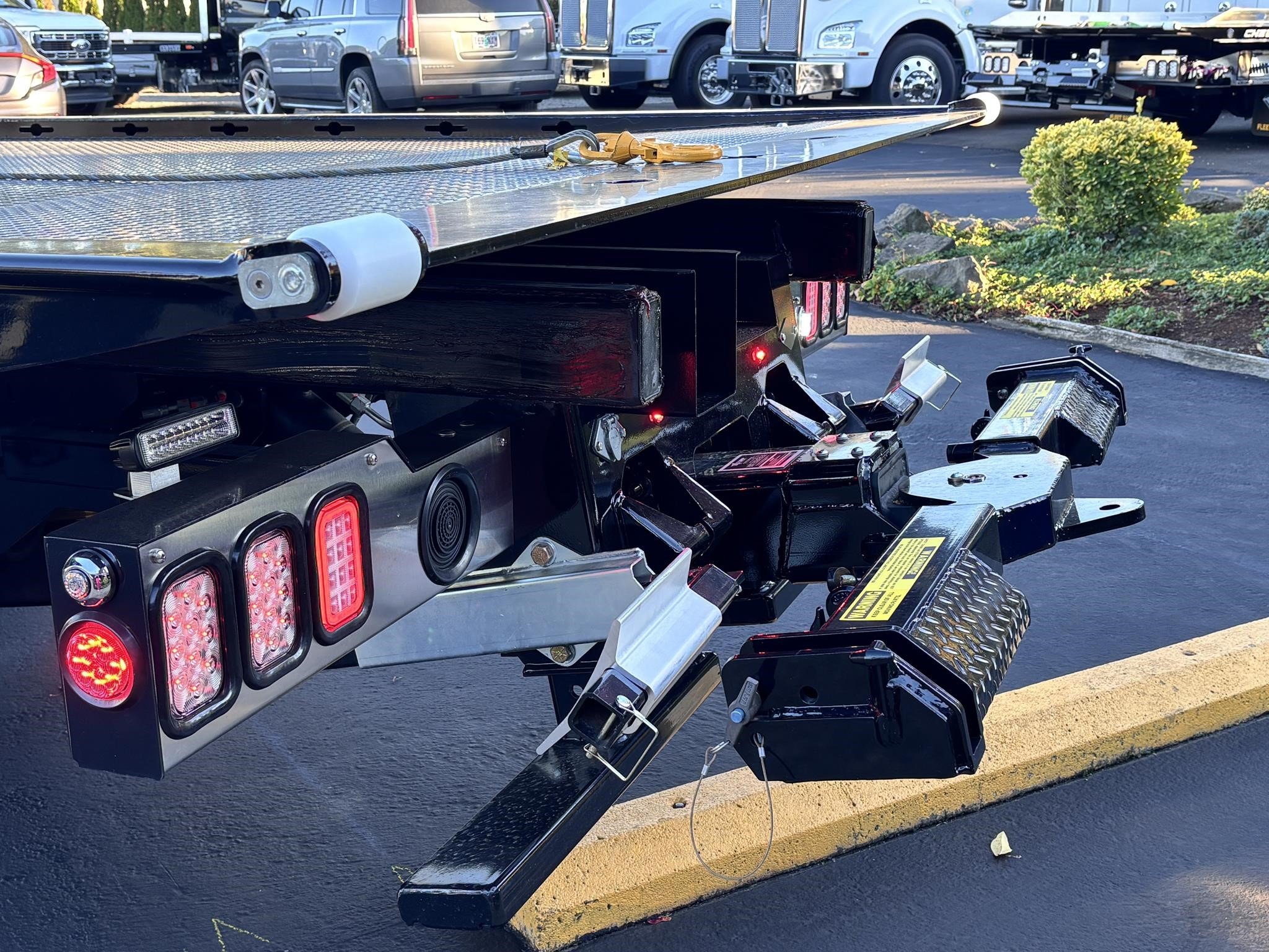 Chevron 21.5' Steel LCG (Low Center of Gravity) Carrier w/ Wheel Lift, 3/16 Deck Plate, 3x2 Corten Tube Crossmembers on 8 inch Centers, (4) Rear Chain Locks, (2) Front Chain Locks, (6) Floor Plate Chain Locks (3 per side), 8,000lb Worm Gear Winch, 3/8" x 50' Winch Cable, Illuminated Dual Controls, FMVSS 108 Lamp Group Shock Mounted Lighted, Direct Mount Pump, Cable Roller Guide w/ Tensioner, Winch Free Spool Extension, Back-Up Alarm, (2) Safety Chains, Mechanical Anti-tilt, Black Body Paint, 102" Wide Body, Inboard Tilt Cylinders, Floor Level Roll Formed w/ Punched Stake Pockets, 4,000lb Wheel Lift w/ Releasable L Arms, Fully Hydraulic Wheel Lift, (2) Safety Straps & Ratchets, (2) Rear Safety Chains, Body Lock w/ Nylatron Roller Bearings, & 12,000lb Deck Load Rating. Body Serial# ST12L2C242047