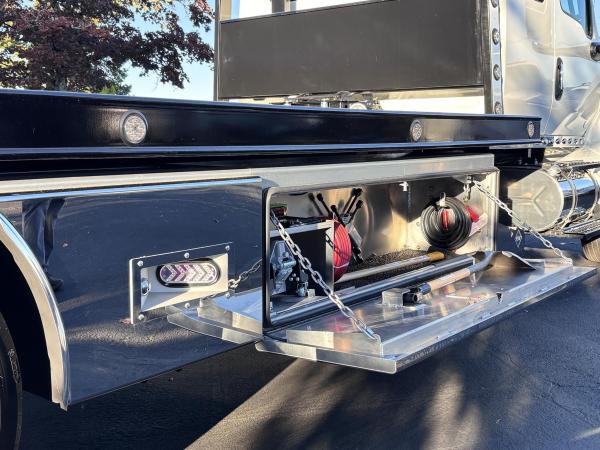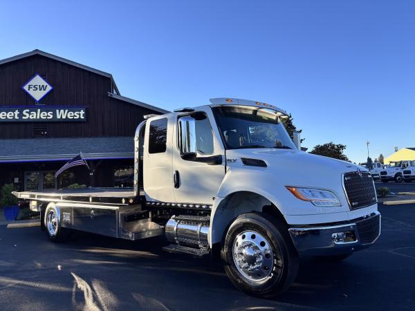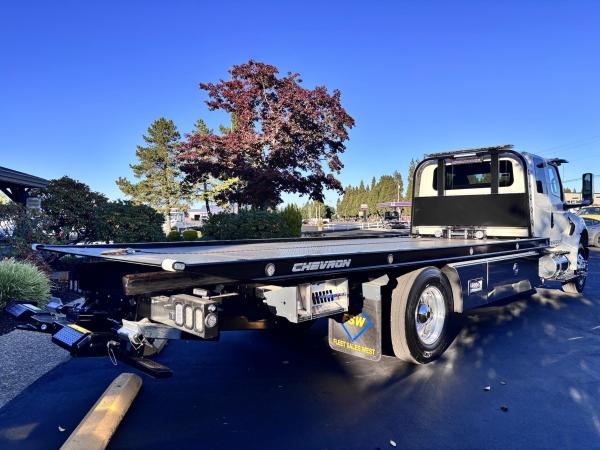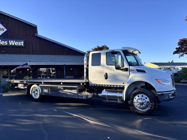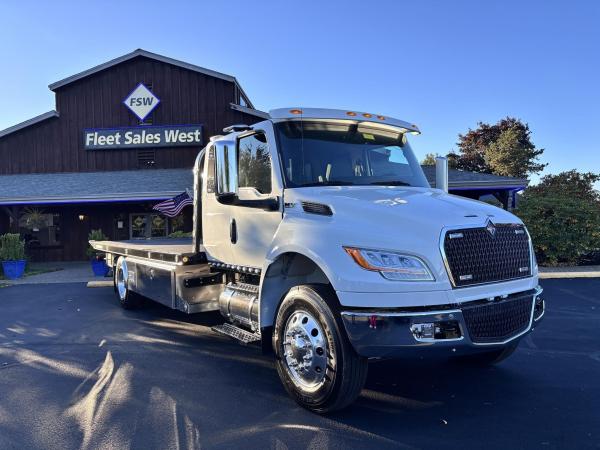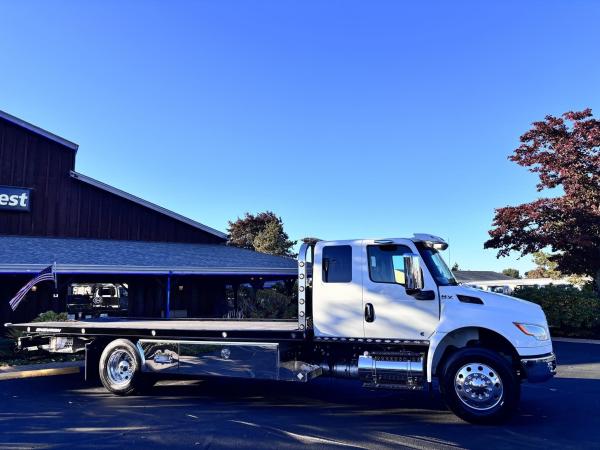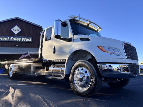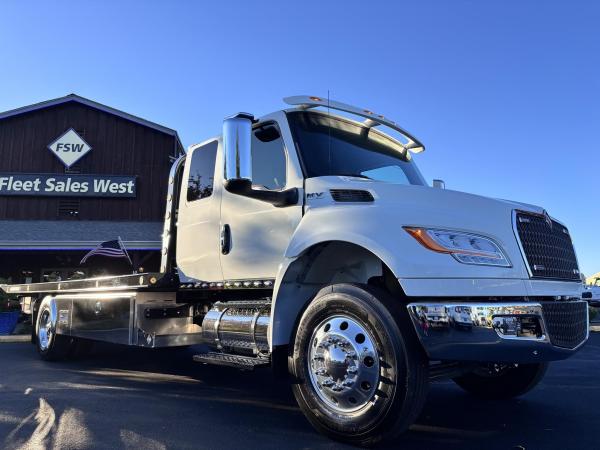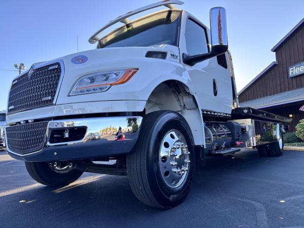 2025 MV EC 325HP 750lbs Torque. RDS - 3000 HD 6-speed. Wing Dash Option,Locking rear differential. Dual 40.50 Aluminum tanks. Air ride Cab mounts. ,10,000lb front axle. 20,000lb Rear axle. 4.88 Ratio. 20,000lb Rear Air Suspension with Dump valve.Gauge for Air Suspension. Dual 40-50 Aluminum tanks, Polished. SEATS Driver & Passenger, {National 2000} Air Suspension, Hi Back, Leather Facing/Vinyl Boxing, 1 Inboard Arm Rest, Isolator, 3 Chamber Lumbar, 6 Way Front Adjust, 3 Way Rear Cushion Adjust, -3 to 14 Degree Back Angle Adjustment, Adj Side Bolster, Vinyl Suspension Cover, Heated. Rear Bench seat - Vinyl. Heated, Power Mirrors. Air Ride cab Mounts. Keyless entry, Power Windows, Power locks. Visor, Air Dryer with heater. battery disconect switch, PTO Switch, Aux Switches. Switch Marker lights interupter, Idle up, leather wrapped steering wheel, Radio AM/FM/WB/Clock/Bluetooth/USB Input/Auxiliary Input 4 speakers.Electric Horn, Cruise control. Block heater, Power Source, additional. Auxiliary Power Outlet (APO) with USB Port, Located in the Instrument Panel Air horn. 25,500 GVWRChevron 21.5' Steel LCG (Low Center of Gravity) Carrier w/ Wheel Lift, 3/16 Deck Plate, 3x2 Corten Tube Crossmembers on 8 inch Centers, (4) Rear Chain Locks, (2) Front Chain Locks, (6) Floor Plate Chain Locks (3 per side), 8,000lb Worm Gear Winch, 3/8" x 50' Winch Cable, Illuminated Dual Controls, FMVSS 108 Lamp Group Shock Mounted Lighted, Direct Mount Pump, Cable Roller Guide w/ Tensioner, Winch Free Spool Extension, Back-Up Alarm, (2) Safety Chains, Mechanical Anti-tilt, Black Body Paint, 102" Wide Body, Inboard Tilt Cylinders, Floor Level Roll Formed w/ Punched Stake Pockets, 4,000lb Wheel Lift w/ Releasable L Arms, Fully Hydraulic Wheel Lift, (2) Safety Straps & Ratchets, (2) Rear Safety Chains, Body Lock w/ Nylatron Roller Bearings, & 12,000lb Deck Load Rating. Body Serial# ST12L2C242047