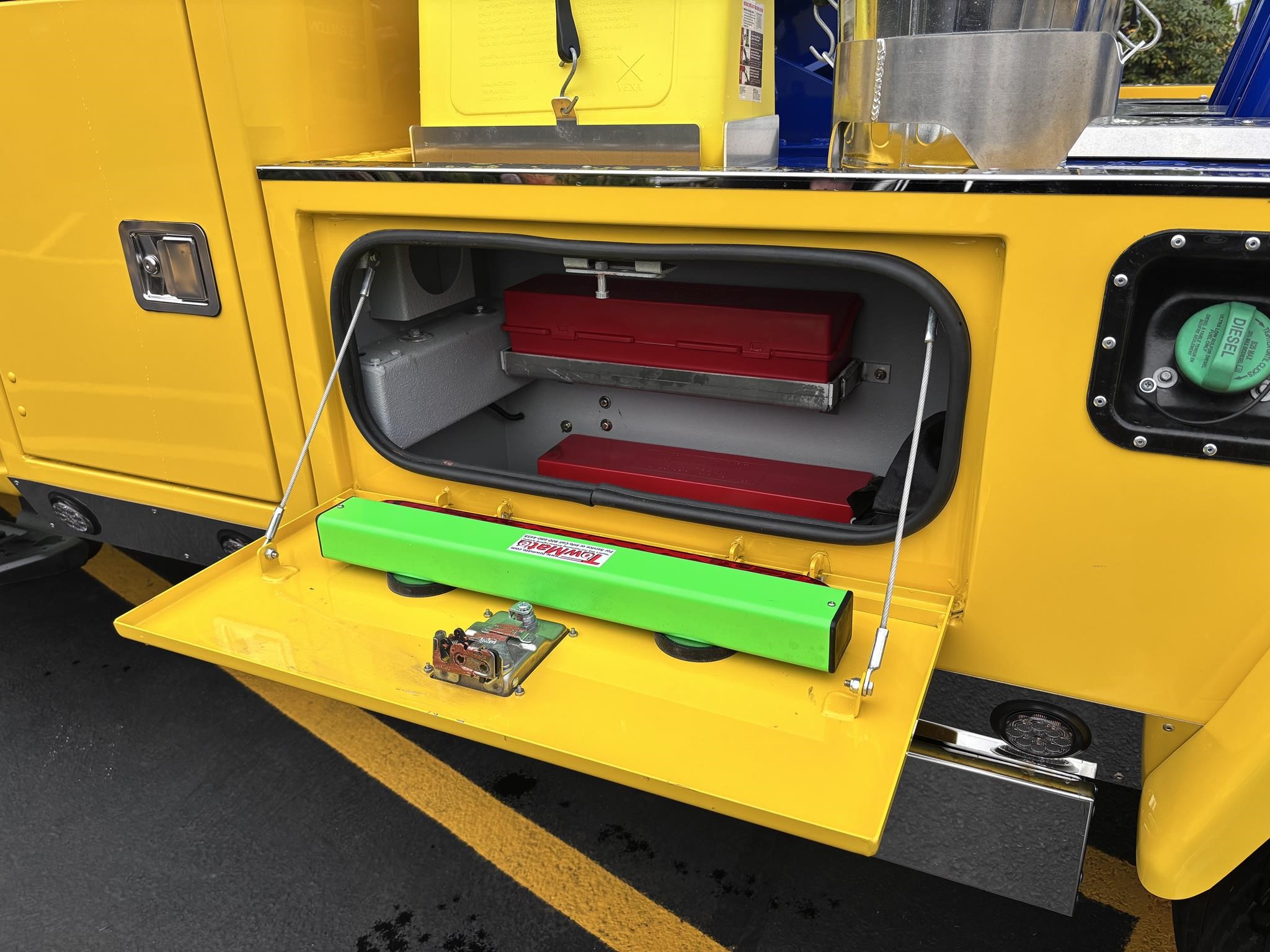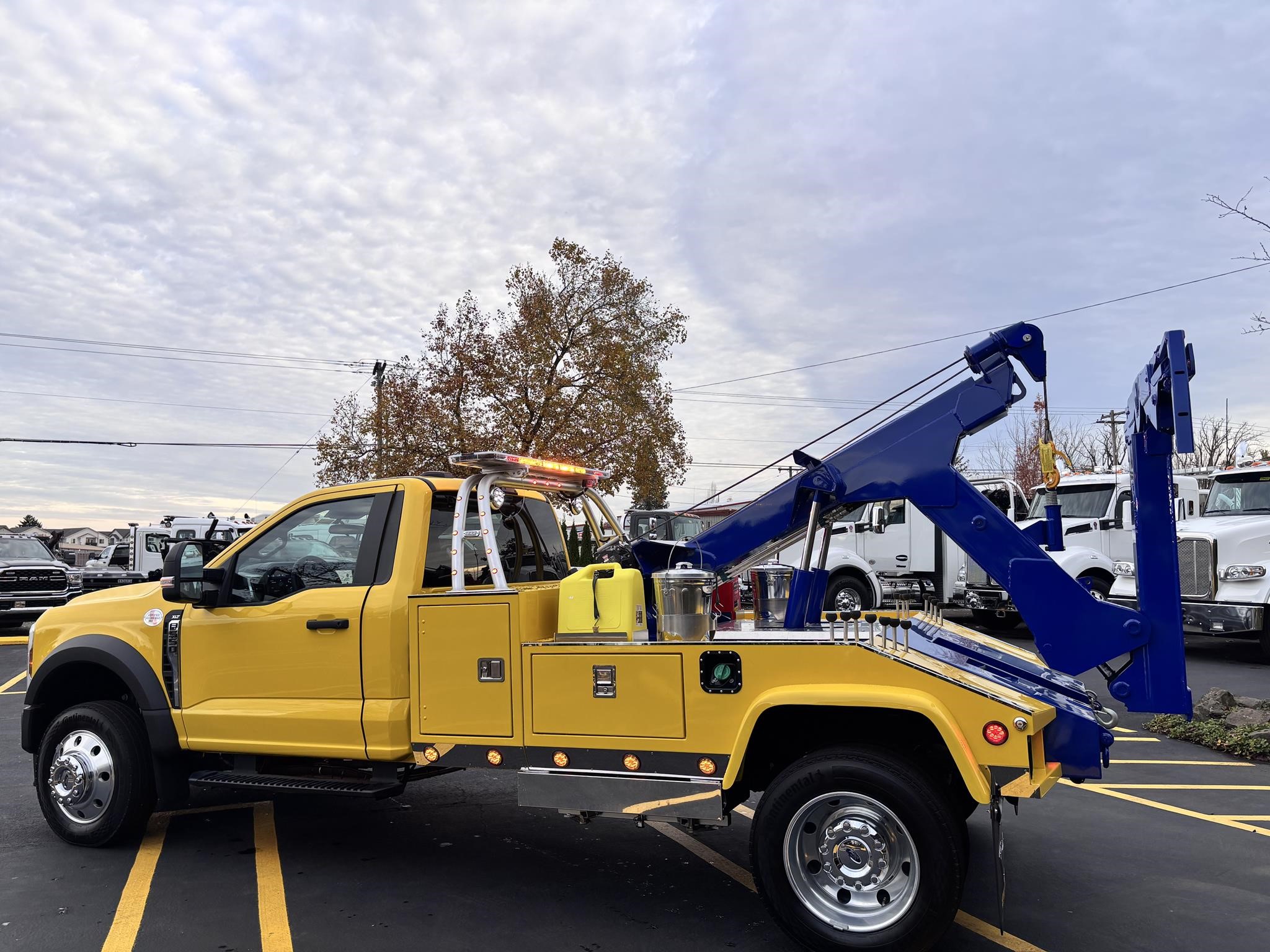 Chevron 408TA DL G2 "Renegade" Extendable boom. 8-ton. Integrated Boom, Wheel Lift, (2) Safety Straps, (2) Side Entry Tool Boxes, Rear Snatch Block Anchors, FMVSS 108 Lamp Group, Safety Chain Pockets, (2) Safety Chains, Back Up Alarm, Auto Grip II Wheel Lift System, Dual 9,000lb Planetary "Warn" Winches w/ 3/8" x 100' Cable, Cable Tensioner, & Dual Control Stations. FMVS 108 Lamp Group. Tow light Plug. Mudflap brackets. Control station labels. Chain pockets. Straps for wheel lift. Body serial #