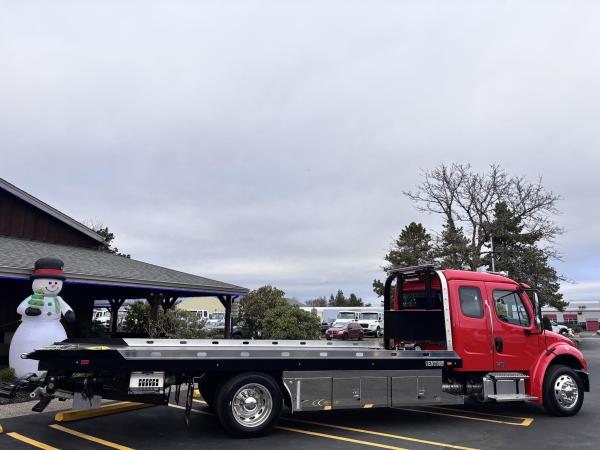 2025 FRTR M-2 Plus Model. Alum. 132" BBC Cab; Cummins 6.7L Engine 300HP 660lbs Torque. Cummins Exhaust brake.Horton HT650 Frontal Air On/off Engine fan. Clutch. 2100 RDS Automatic Transmission 6 Speed. Phillips-TEMRO 750-Watt/115-Volt block heater. dash-mounted T-Handle Cable Shift Control w/ park brake position. Synthetic Transmission Fluid.Synthetic 75W-90 Front Axle lube 10,000# front suspension. ARS-19.0-2 19,000# R-SERIES single rear axle. 4.88 Rear Axle Ratio.SYNTHETIC 75W-90 rear Axle lube. Airliner 18,000# Rear Suspension. Manual Dump Valve for Air Suspension. - Air brake package. Air Dryer w/Heater. 120KSI (Frame). 50 Gallon/Rectangular fuel tank, aluminum: Alliance Fuel filter/Water separator with Primer pump. 255/70R22.5 Tires. Alum. 22.5X8.25 10-Hub pilot disc wheels. Dual West Coast Bright mirrors. 8" bright finish convex mirrors mounted under primary mirrors. Non-operating wing windows. Opal Gray Vinyl Interior. (2) Cup Holders; Heater, Defroster & Air Conditioner. Power windows. Single passenger seat. Air ride driver seat, Rear bench seat. Adjustable Tilt and Telescoping Steering Column. (6) IGN Controlled Extra Switches to junction block AND 1 Circuit at 30 Amp. Windshield Wiper motor with Delay marker light. Switches the self-canceling turn signal. Switch with dimmer, Washer/Wiper & Hazard in Handle. Idle up, Cruise control. 22.5 Aluminum wheels 25,500 GVWR.Cordua Cloth - Seats- Keyless entry, 150" CA Gauge for Air Ride suspension.