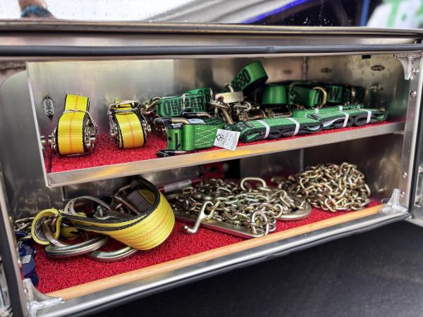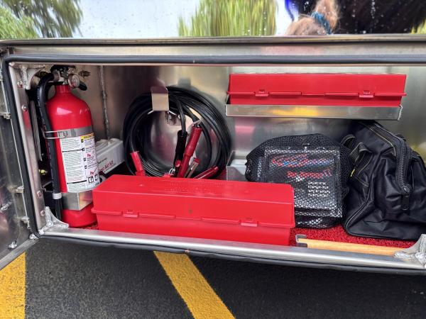 B/M: Fuel Can Rack, 2-Can, Aluminum, behind toolboxes