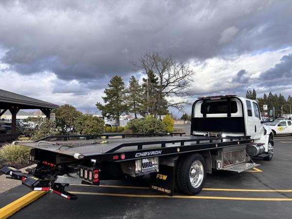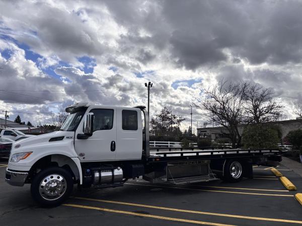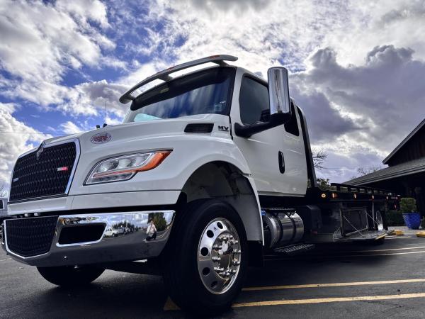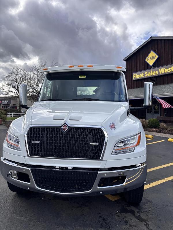 2025 International Model MV Extended cab. Cummins ISB 6.7L, 260HP @ 2,300 rpm, 660 lb-ft @ 1,600 rpm, Allison RDS-2200 6 Speed Auto, Air Brakes, Air Dryer Heater, Exhaust Brake, Front Axle: Dana-Spicer I-Beam 8,000lb w/ Shock Absorbers, Rear Axle: Dana-Spicer 17,500lb, 20,000lb Air Ride Suspension, 4.88 Rear Axle Ratio, Chrome Bumper, black Grille, Air Ride Driver Seat, Air ride Passenger Seat, rear bench seat. Idle Up, Cruise Control, Tilt-Wheel, AM/FM/CD/MP3 w/ Bluetooth, Air Horn, Engine Block Heater, Dual 40-50 Gal Alum Fuel Tanks, 7 Gal DEF Tank, Power Windows, Power Door Locks, Power heated Mirrors. A/C, 255/70R22.5 Tires w/ 22.5 Alum Wheels, Cup holders.Visor 25,500 GVWR,Extended Warranties.- Engine Warranty: 5 yr / 300k miles PPI & after treatment, and Tranny Warranty: 7 yr / Unlimited Miles.