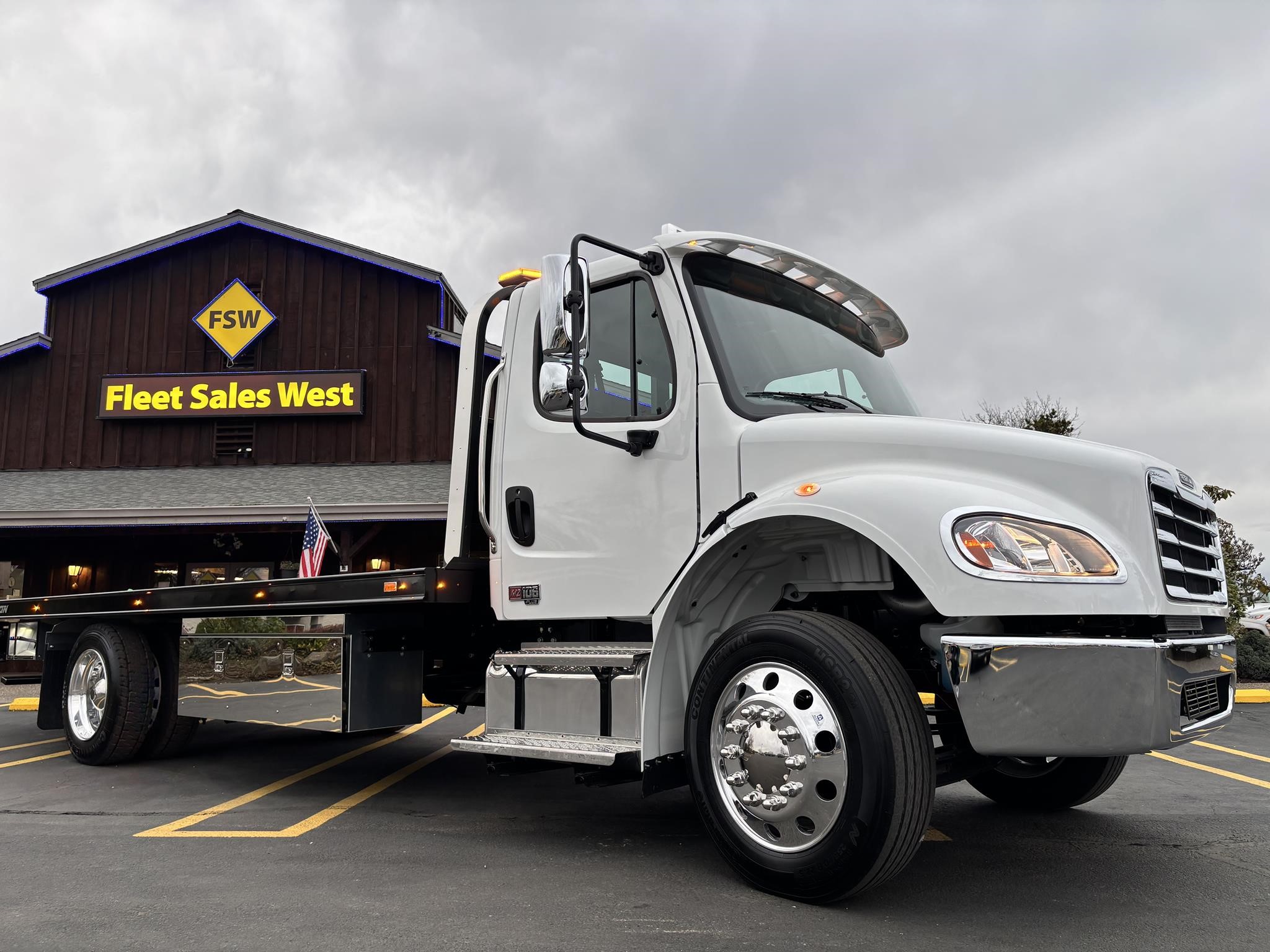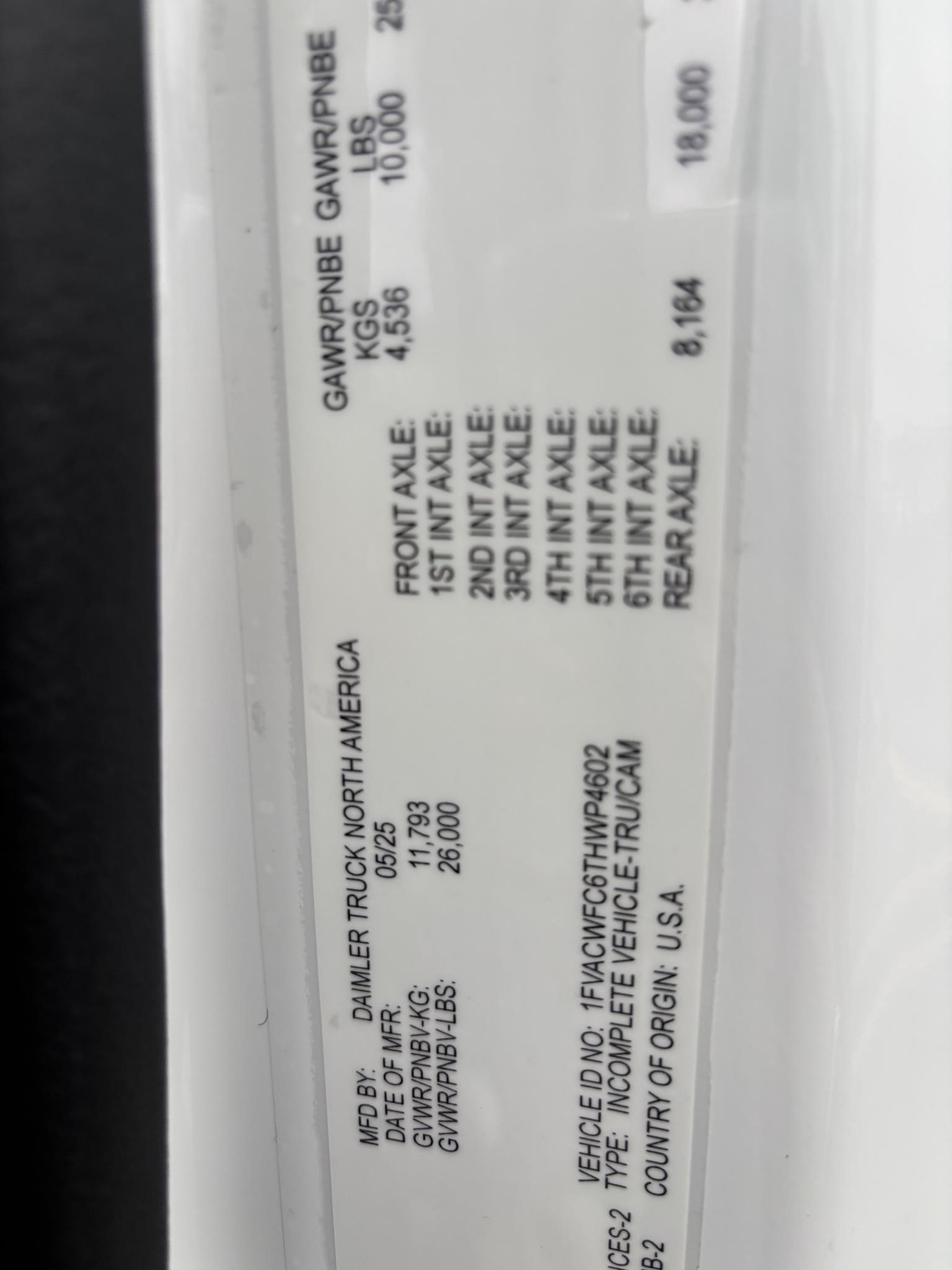 M-2 Alum. 106" Cab; Cummins 6.7L Engine 260HP 660lbs Torque. Cummins Exhaust brake.Horton HT650 Frontal Air On/off Engine fan. Clutch. 2100 RDS Automatic Transmission 6 Speed. Phillips-TEMRO 750 Watt/115 Volt block heater. dash-mounted T-Handle Cable Shift Control w/ park brake position. Synthetic Transmission Fluid.Synthetic 75W-90 Front Axle lube 10,000# front suspension. ARS-19.0-2 19,000# R-SERIES single rear axle. 4.88 Rear Axle Ratio.SYNTHETIC 75W-90 rear Axle lube. Airliner 18,000# Rear Suspension. Manual Dump Valve for Air Suspension. - Air brake package. Air Dryer w/Heater. 120KSI (Frame). 50 Gallon/Rectangular fuel tank, aluminum: Alliance Fuel filter/Water separator with Primer pump. 255/70R22.5 Tires. Alum. 22.5X8.25 10-Hub pilot disc wheels. Dual West Coast Bright mirrors. 8" bright finish convex mirrors mounted under primary mirrors. Non-operating wing windows. Opal Gray Vinyl Interior. (2) Cup Holders; Heater, Defroster & Air Conditioner. Power windows. Air ride driver seat, Single Passenger. Adjustable Tilt and Telescoping Steering Column. (6) IGN Controlled Extra Switches to junction block AND 1 Circuit at 30 Amp. Windshield Wiper motor with Delay marker light. Switches the self-canceling turn signal. Switch with dimmer, Washer/Wiper & Hazard in Handle. Idle up, Cruise control. 22.5 Aluminum wheels 25,500 GVWR.