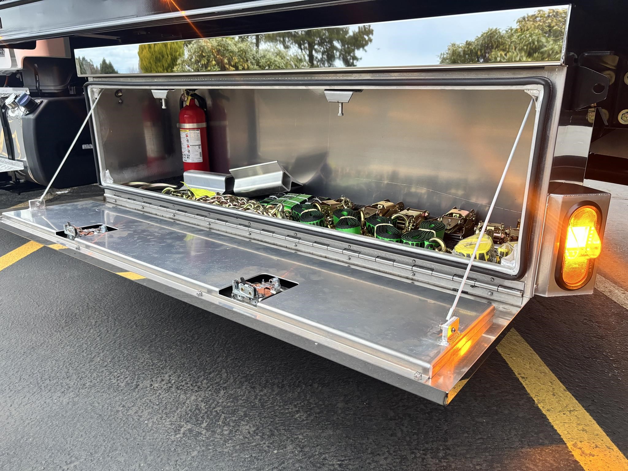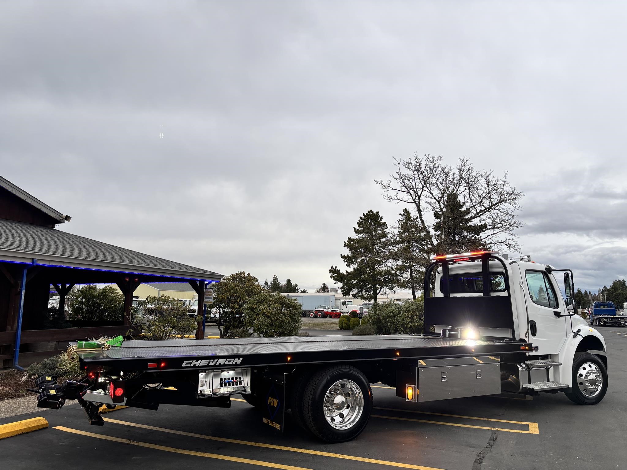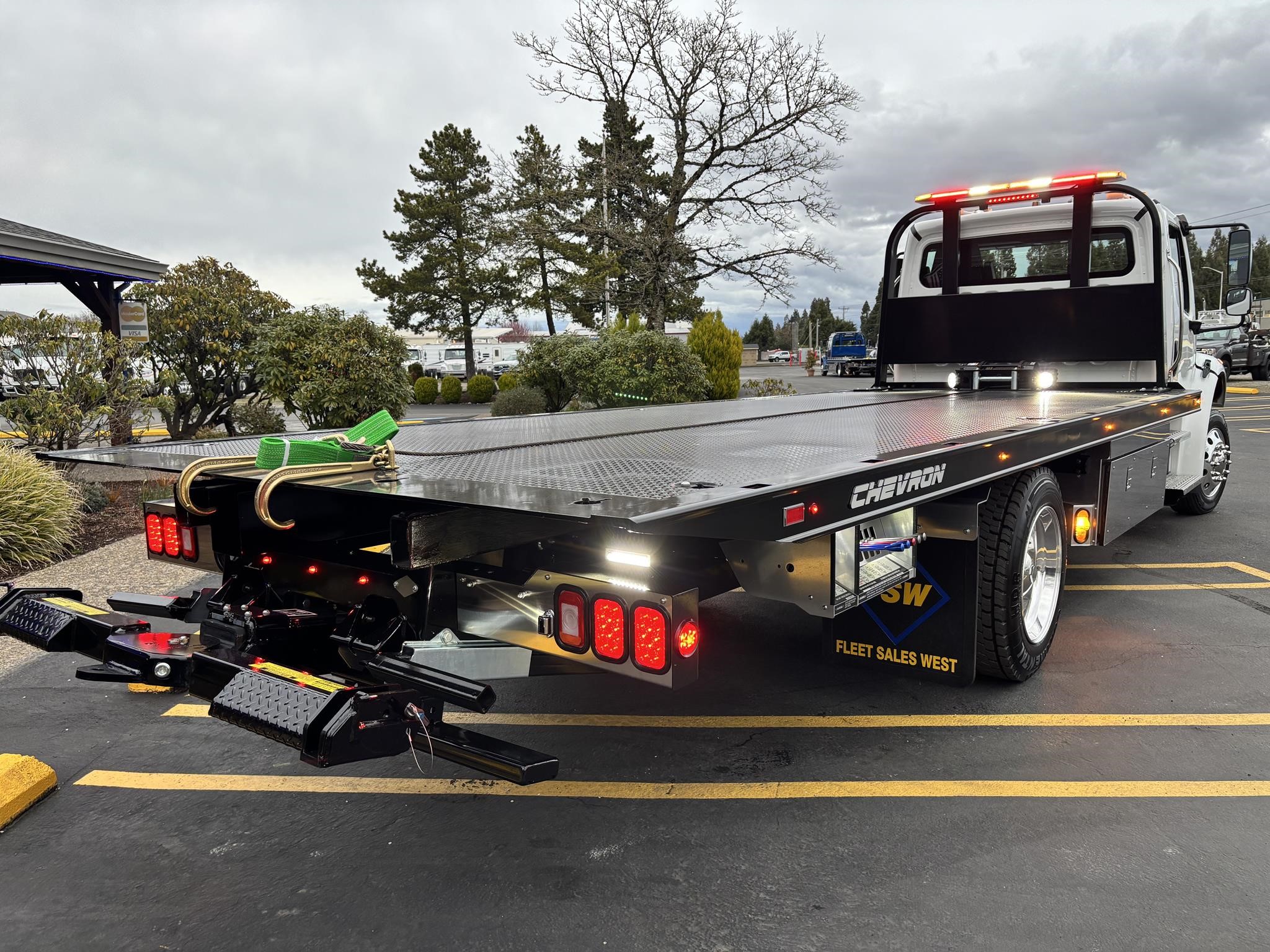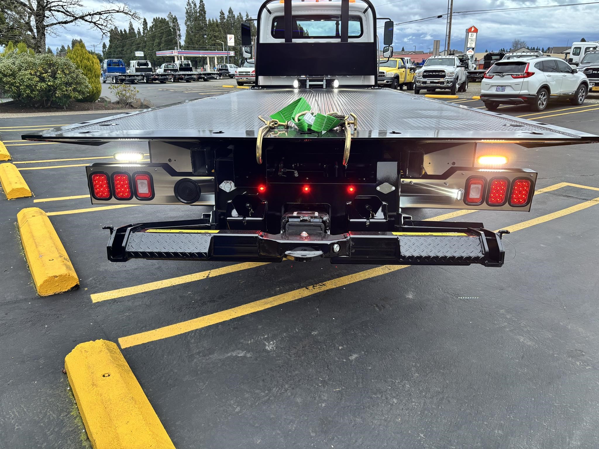 Chevron 21' Steel LCG (Low Center of Gravity) Carrier w/ Wheel Lift, 3/16 Deck Plate, 3x2 Corten Tube Crossmembers on 8 inch Centers, (4) Rear Chain Locks, (2) Front Chain Locks, (6) Floor Plate Chain Locks (3 per side), 8,000lb Worm Gear Winch, 3/8" x 50' Winch Cable, Illuminated Dual Controls, FMVSS 108 Lamp Group Shock Mounted Lighted, Direct Mount Pump, Cable Roller Guide w/ Tensioner, Winch Free Spool Extension, Back-Up Alarm, (2) Safety Chains, Mechanical Anti-tilt, Black Body Paint, 102" Wide Body, Inboard Tilt Cylinders, Floor Level Roll Formed w/ Punched Stake Pockets, 4,000lb Wheel Lift w/ Releasable L Arms, Fully Hydraulic Wheel Lift, (2) Safety Straps & Ratchets, (2) Rear Safety Chains, Body Lock w/ Nylatron Roller Bearings, & 12,000lb Deck Load Rating. Body Serial# ST12L2E252436