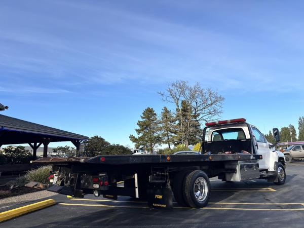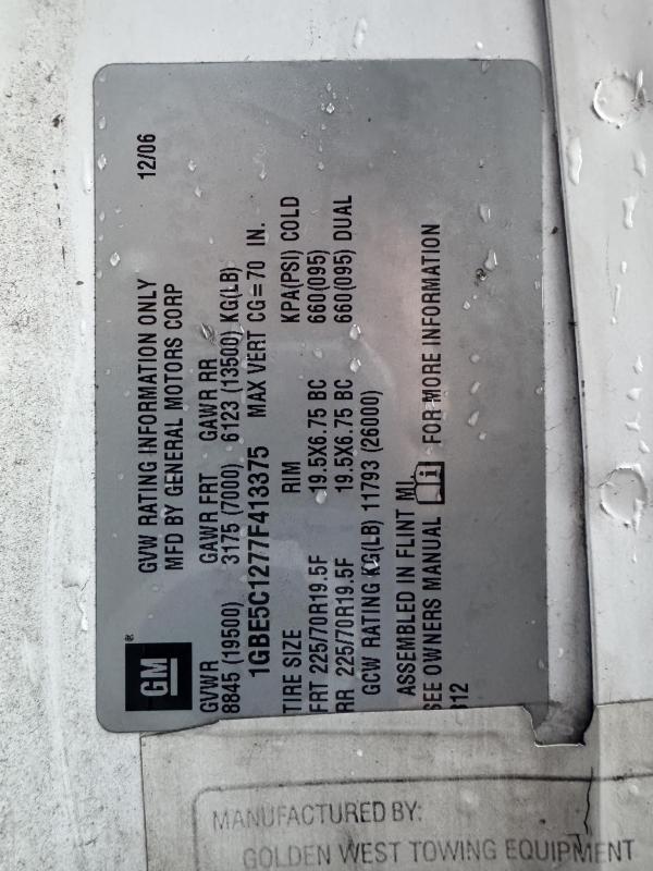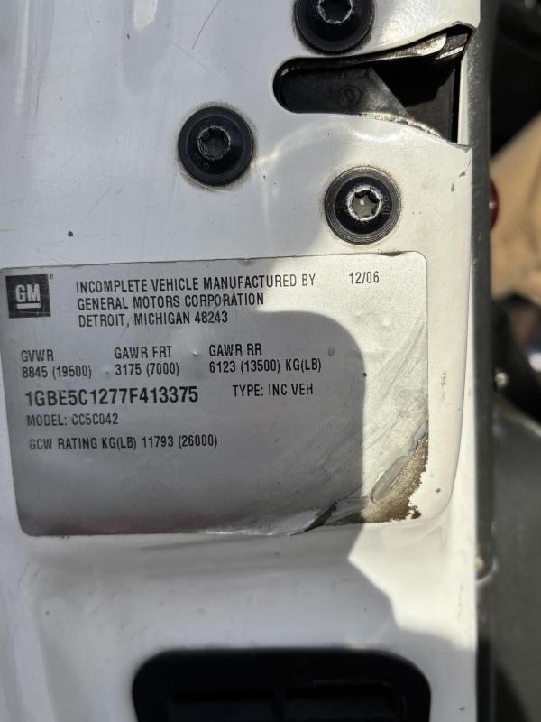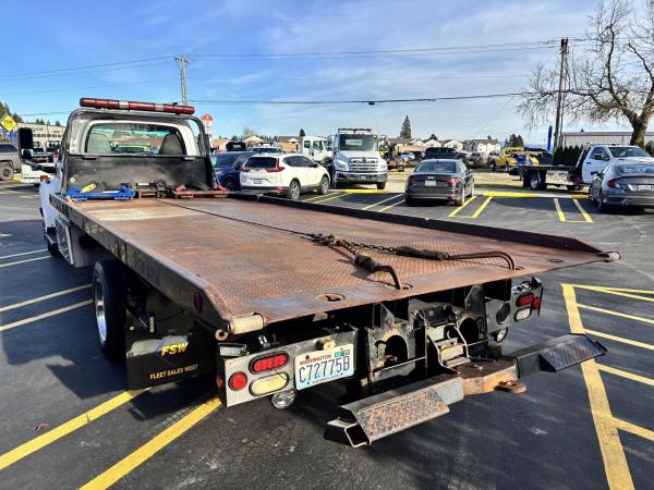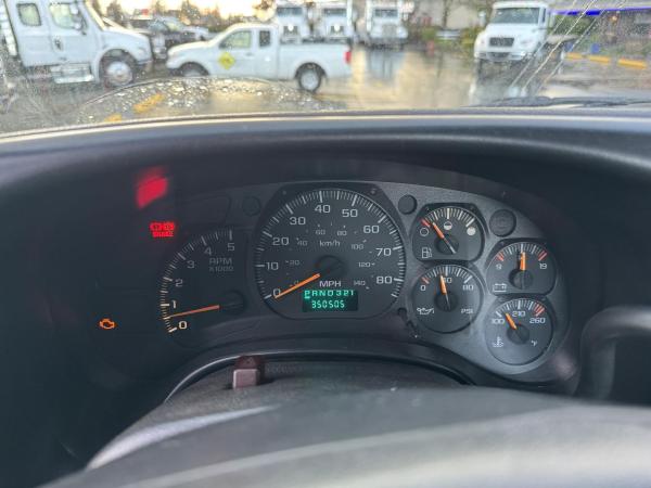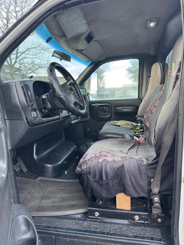 Chevy 5500 300HP 6.6L 605lbs torque Duramax Diesel. RDS-1000 Automatic with park position. Hystec Cab mounts 7,000lb front suspension. Appearance package. Rear shocks.Engine block heater.Dual Horns Electric. 4.56 Rear-end ratio. Cloth, very dark pewter. Air compressor. Exhaust brake.Power windows. Power locks. Cruise Control. AM/FM CD player. Air ride driver's seat. Two-man passenger seat. Tilt wheel. Power Mirrors. Aluminum wheels. 22-gallon tank. Chrome bumper, Appearance package. Idle up. A/C- Works. Tilt wheel. 19.5 225/70R Tires, Aluminum wheels. 19,500 GVWRInspection notes:Brakes Front: Left 80% Right_80_% Rear: Left_80_% Right_80_%