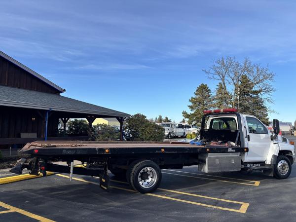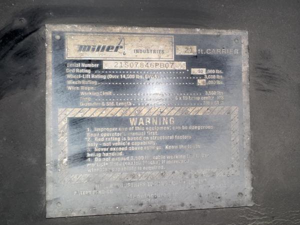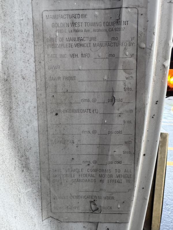 21 FT Steel carrier with an independent wheel lift. Full-Length Slide Pads. 8,000lb Winch. Hydraulic pump. Painted Black. Backup lights, backup Alarm. Tow light sockets. Bed anti-tilt lockout/ right and left Chain Trays. Safety Chains (2-front, 2 rear) Dual lighted controls. FMVS 108 Lighting group. Wheelift safety pin. Full-height cab protector.Stainless steel tail light plates. Cable Roller guide. Cable tensioner. Positive lockdown. Prewired Junction box. Straps and Ratchets for Wheelift., Ratchets, 11 Chain lock package body- Body Serial #